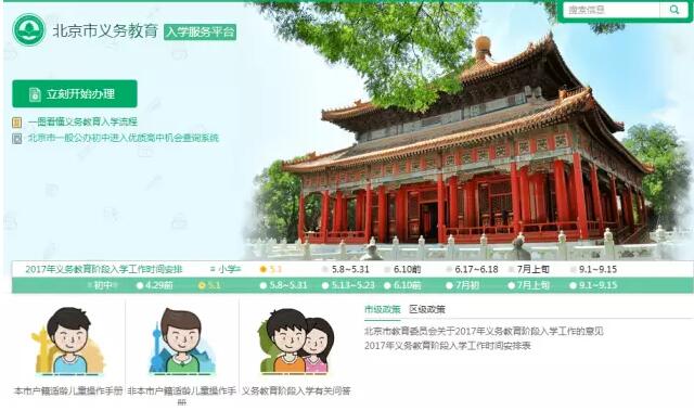 5月8日至31日,本市将完成2017年北京市小学和初中入学信息采集工作,适龄儿童少年需要登录北京市义务教育入学服务平台(http://yjrx.bjedu.cn/),进行统一的信息采集。市教委提示,平台登记的手机号码将用于接收入学各阶段信息,家长务必填写正确。
