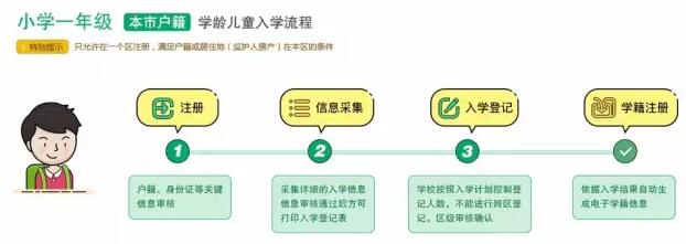进行信息采集之前,适龄儿童需要先选择进行入学登记的区,在规定时间内在小学入学服务系统进行注册,并填写详细信息,信息真实性审核通过后可打印信息采集表。到学校登记报名时要出示信息采集表。
