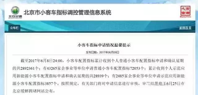 6月9日,北京小客车指标办发布第三期摇号数据,小客车配置指标累计收到个人普通小客车配置指标申请和确认延期的共2892361个,比上期2864926个又增加了27435个。