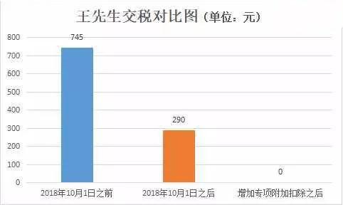 2018年10月1日前,王先生缴纳个税金额:(10000-3500)*20%-555=745元;