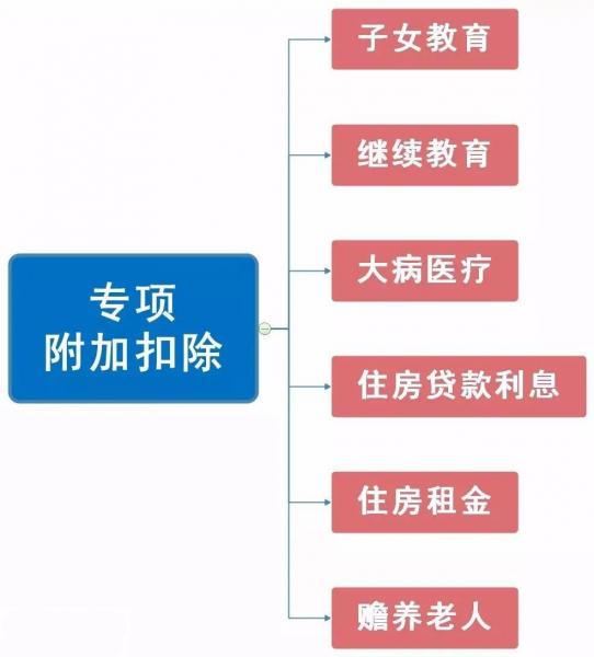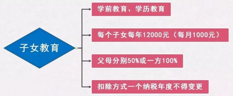①子女教育专项附加扣除: