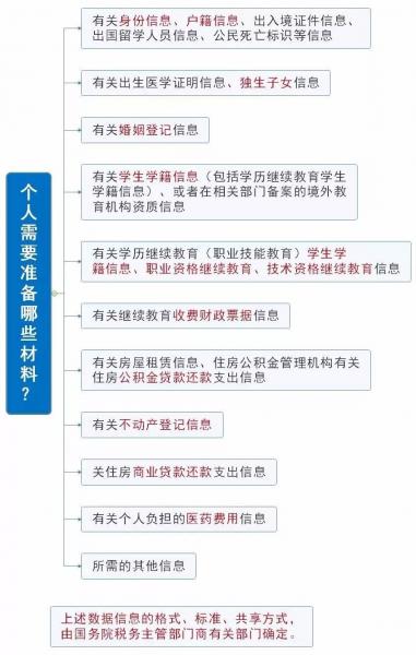 从《暂行办法》第二十四条有关规定可以看出,个人或需要准备以下与专项附加扣除有关的信息: