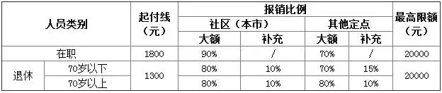 ①在职职工到医院的门诊、急诊看病后,自然年度内累计超过1800元以上的医疗费用才可以报销,报销的比例为在社区医院90%、其他定点医院70%,最高限额可报2万元;